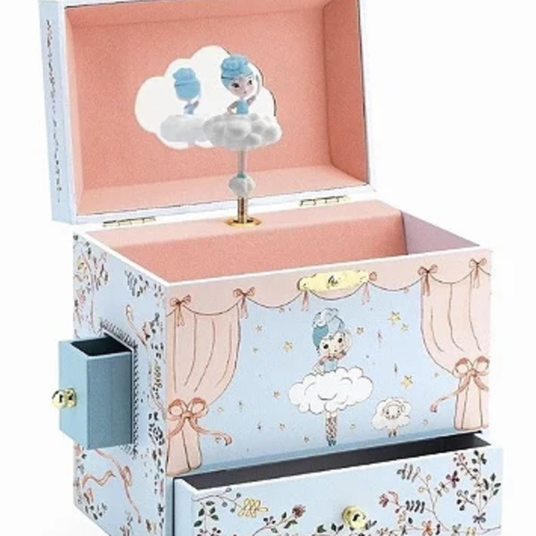 A Caixa de Música Bailarina Azul da Djeco é um convite ao mundo da fantasia e do refinamento clássico. Com uma estética suave e ilustrações artísticas exclusivas, este porta-joias é um clássico atemporal que encanta crianças e adultos, tornando-se uma peça de destaque na decoração.