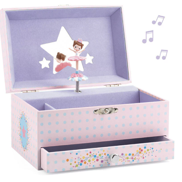 A Caixa de Música Bailarina da Djeco é um tesouro clássico que une a delicadeza da ilustração francesa à sofisticação da música erudita. Projetada para encantar os olhos e os ouvidos, ela é o refúgio perfeito para as joias e pequenas lembranças mais queridas das crianças.