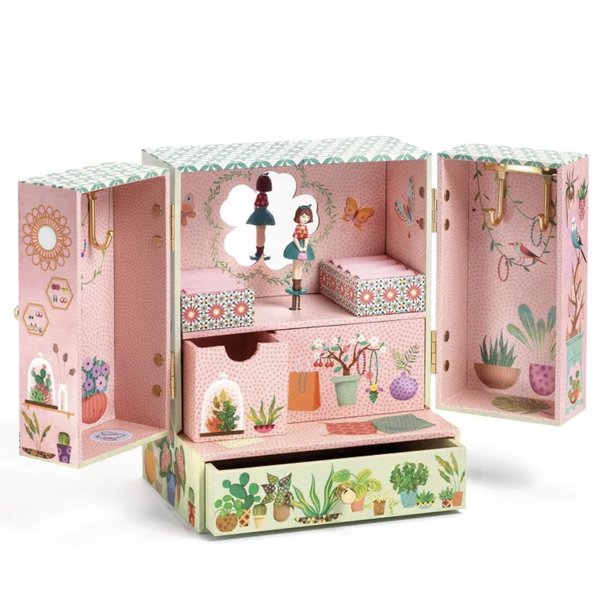 A Caixa de Música Jardim Secreto da marca francesa Djeco é um convite à contemplação e à organização de forma lúdica. Com uma estética inspirada na natureza e na delicadeza das flores, esta caixinha de joias é o lugar perfeito para as crianças (e adultos!) guardarem seus acessórios e pequenos tesouros com segurança e estilo.