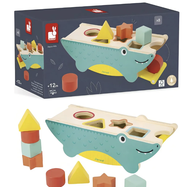 O Crocodilo Encaixa Formas da Janod é muito mais do que um brinquedo de madeira; é uma ferramenta de descoberta colorida e divertida! Com um design encantador e vibrante, este simpático crocodilo convida os pequenos a explorar o mundo das formas e cores de maneira lúdica e segura.