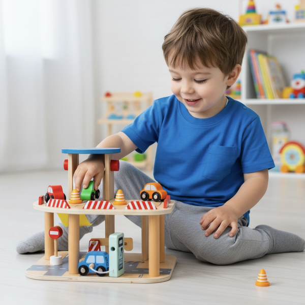 Estacione e Recarregue Babebi – Brinquedo Educativo em Madeira