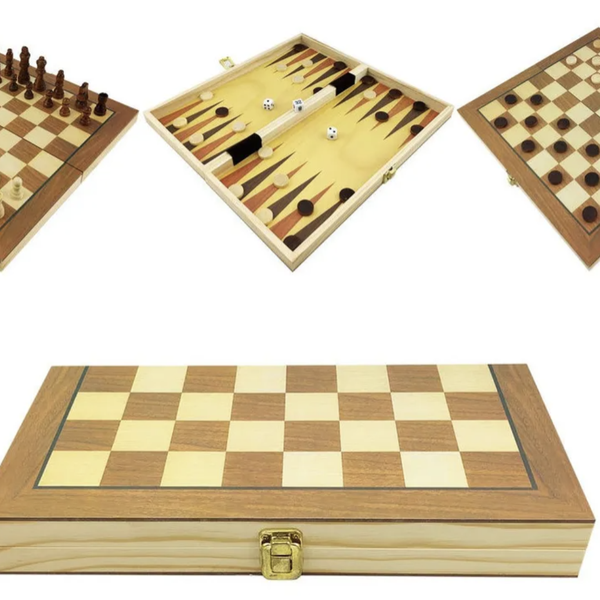 Versatilidade Total: Um único tabuleiro (geralmente reversível ou com design inteligente) que permite jogar Xadrez, Dama e Gamão.