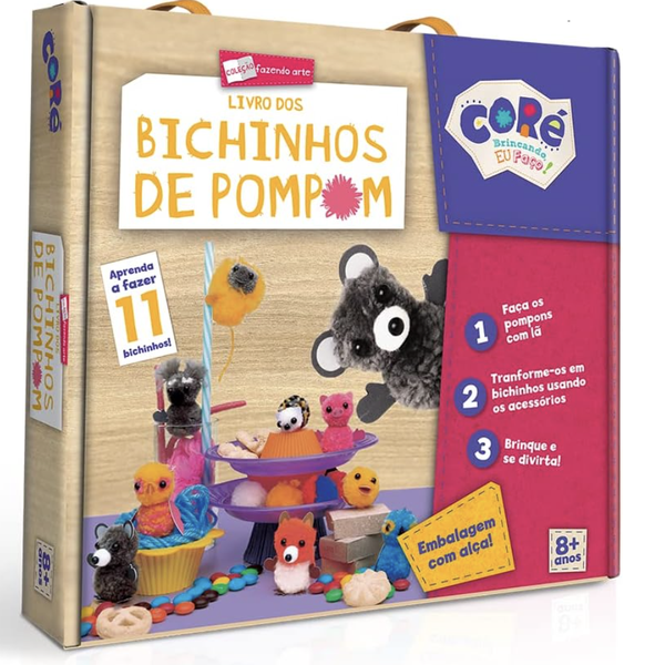 Aprenda a fazer lindos bichinhos de pom pom com esse livro que ensina passo a passo como fazê-los. O kit vem com materiais inclusos.