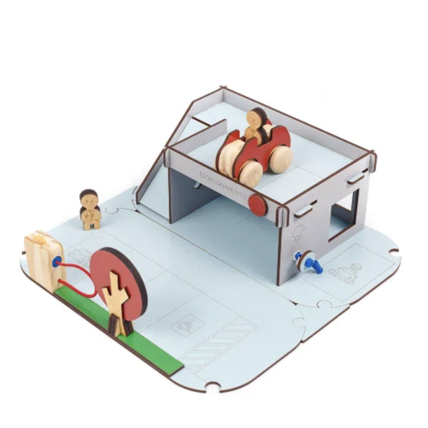 Com um design clean e educativo, este brinquedo em madeira convida os pequenos a explorarem o cotidiano de uma cidade que respeita o meio ambiente. É o cenário perfeito para carrinhos e personagens, unindo o charme do material natural com a importância da sustentabilidade.