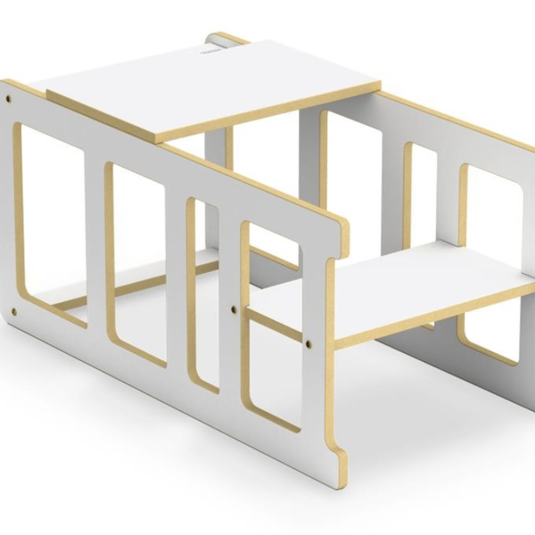 Desenvolvida com os princípios pedagógicos Montessori, a torre 4 em 1: Torre 2 níveis + Cadeirão + Mesinha, promove a independência e a aprendizagem ativa das crianças, adaptando-se às necessidades em cada estágio de crescimento.